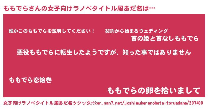 | 意味不明あだ名 | 『住所不定無職ももでら(89歳)』 |