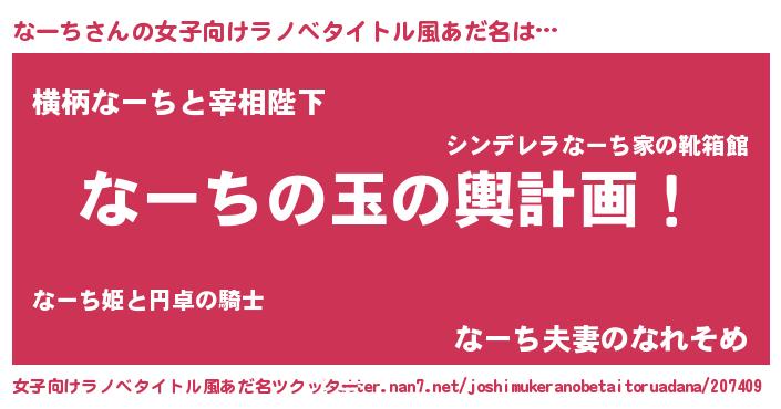 | 男性向けラノベタイトル風あだ名 | 『転生したらなーちだった件』 |
