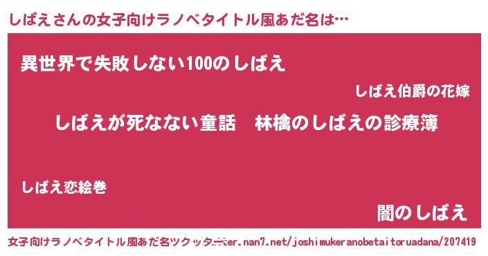 | 男性向けラノベタイトル風あだ名 | 『魔弾の王としばえ』 |