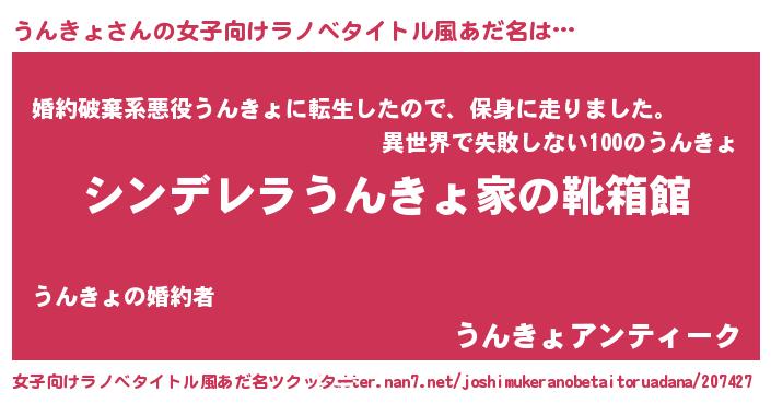 | 男性向けラノベタイトル風あだ名 | 『緋弾のウンキョ』『ウンキョスレイヤー』 |