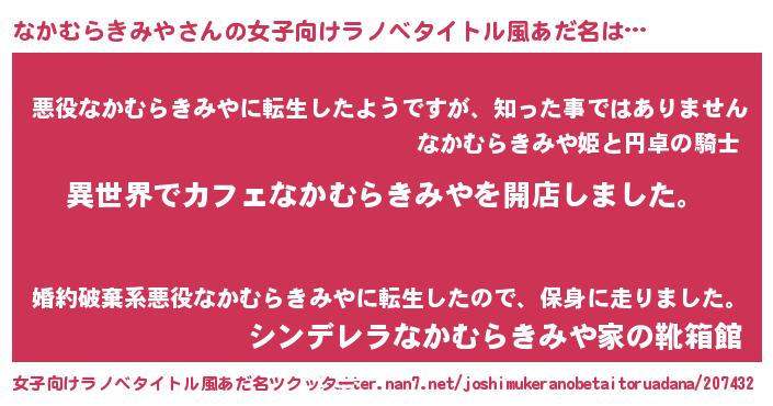 | 男性向けラノベタイトル風あだ名 | 『誰もが恐れるあのなかむらきみやが、ぼくの専属メイドになるようです。』 |