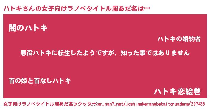 | 胡散臭い通販商品みたいなあだ名 | 『あなたにだけ特別に提供する世界で10本だけ現存している希少なブランデー…その名も「ハトキ」』 |