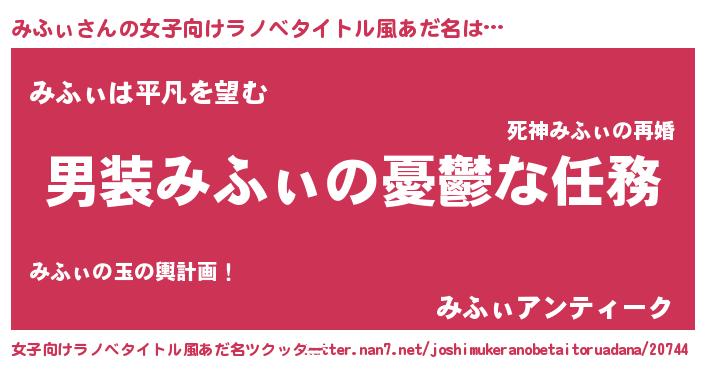 | 意味不明あだ名 | 『とにかく怪しいみふぃ』『自称みふぃ』 |