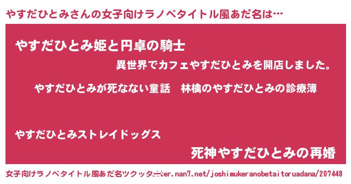| 料理風あだ名 | 『やすだひとみのカルパッチョ風』 |