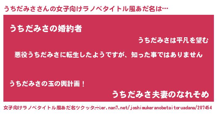 | 男性向けラノベタイトル風あだ名 | 『この素晴らしい世界にうちだみさを!』 |