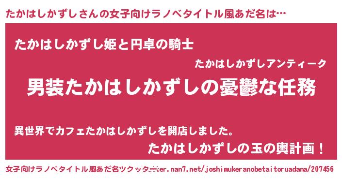 | 男性向けラノベタイトル風あだ名 | 『うちのたかはしかずしが世界を掌握している!』 |