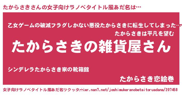 | 意味不明あだ名 | 『たからさきフォーエバー』 |