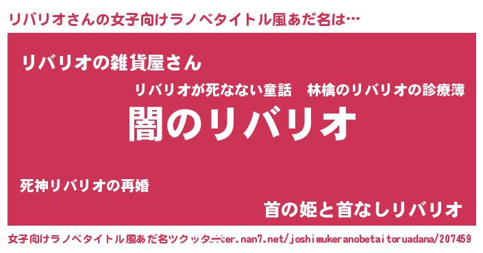 | 男性向けラノベタイトル風あだ名 | 『Re:リバリオから始める異世界生活』 |