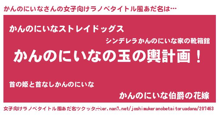 | 男性向けラノベタイトル風あだ名 | 『転生したらかんのにいなだった件』 |