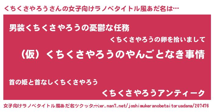 | 男性向けラノベタイトル風あだ名 | 『くちくさやろうの憂鬱』 |