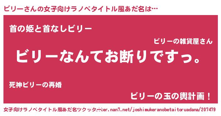 | 男性向けラノベタイトル風あだ名 | 『魔法科高校のビリー』 |