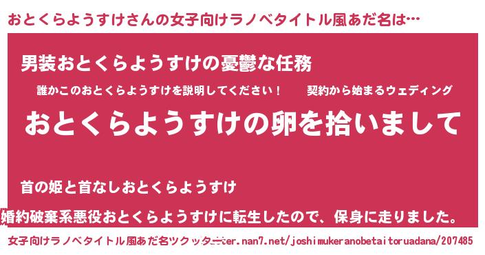 | 男性向けラノベタイトル風あだ名 | 『ダンジョンにおとくらようすけを求めるのは間違っているだろうか』 |