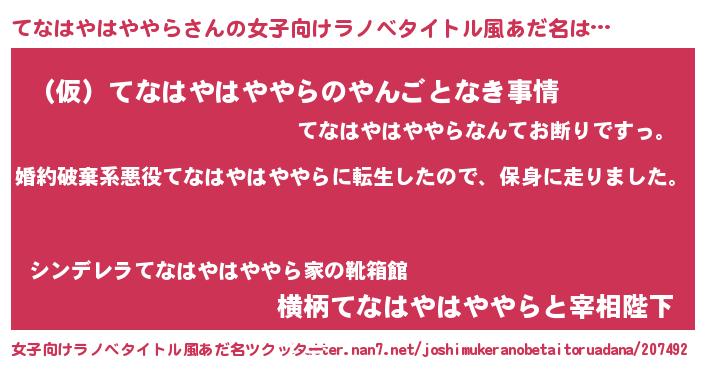 | 男性向けラノベタイトル風あだ名 | 『転生したらてなはやはややらだった件』 |