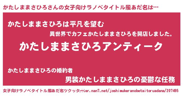 | 男性向けラノベタイトル風あだ名 | 『魔法科高校のかたしままさひろ』 |