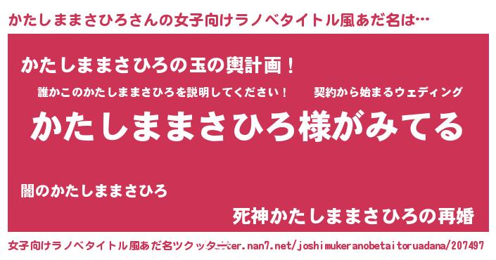 | 意味不明あだ名 | 『とにかく怪しいかたしままさひろ』 |