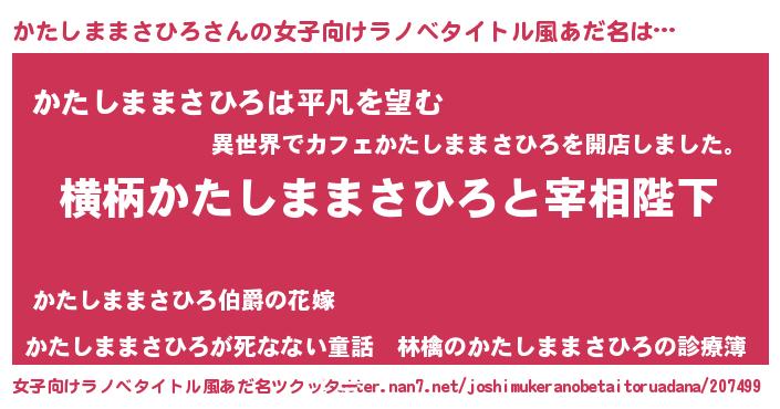 | 男性向けラノベタイトル風あだ名 | 『かたしままさひろに滅ぼされるだけの簡単なお仕事です』 |
