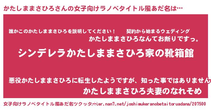 | 胡散臭い通販商品みたいなあだ名 | 『必ず成功する霊験あらたかなお札…その名も「かたしままさひろ」』 |