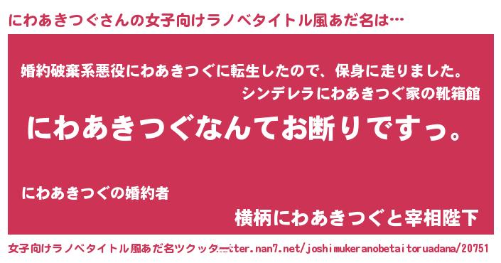 | 意味不明あだ名 | 『自称にわあきつぐ』 |