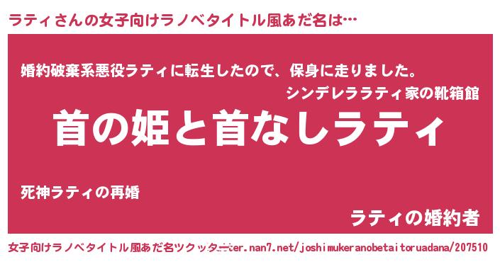 | 男性向けラノベタイトル風あだ名 | 『はたらくラティさま!』『緋弾のラティ』 |