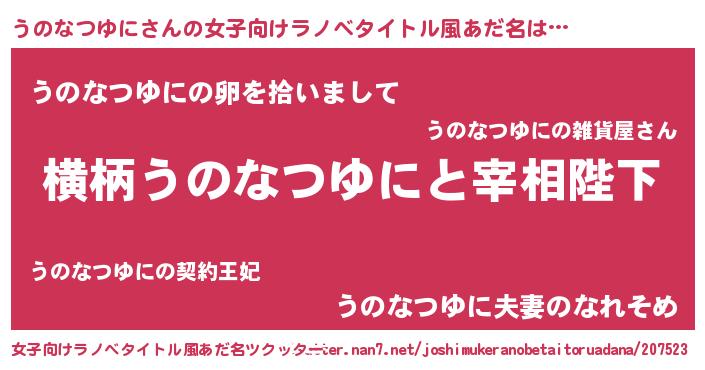 | 男性向けラノベタイトル風あだ名 | 『うのなつゆにに滅ぼされるだけの簡単なお仕事です』 |