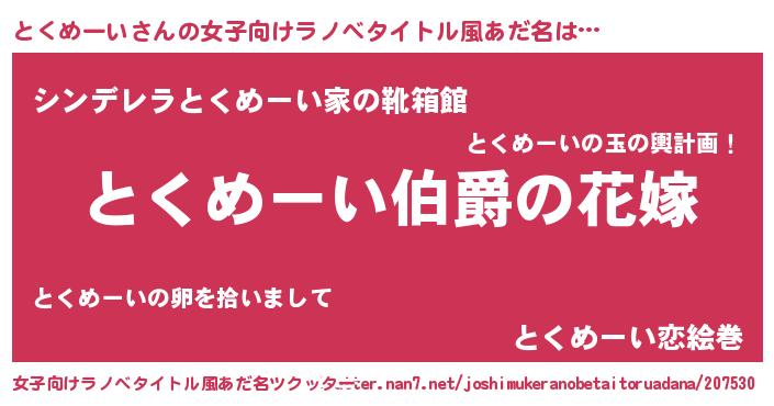 | ファンタジー風あだ名 | 『エターナルトクメーイー』 |