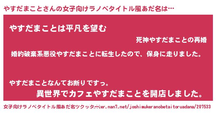 | 男性向けラノベタイトル風あだ名 | 『ヤスダマコトスレイヤー』 |