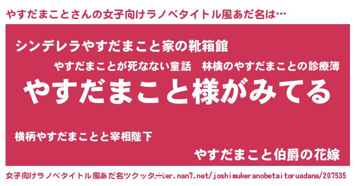 | 胡散臭い通販商品みたいなあだ名 | 『全米が絶賛したサプリメント…その名も「やすだまこと」』 |
