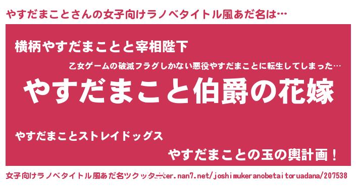 | 男性向けラノベタイトル風あだ名 | 『やはりやすだまことの青春ラブコメはまちがっている 』 |