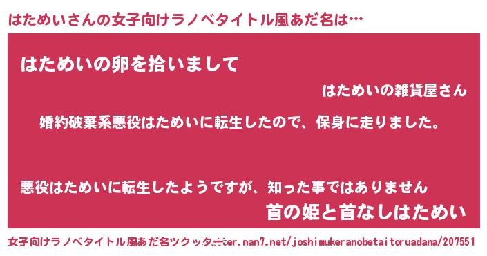 | 男性向けラノベタイトル風あだ名 | 『ハタメイスレイヤー』 |