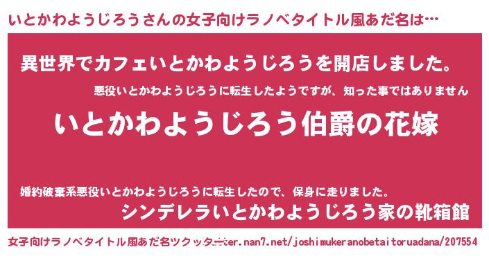 | 肩書あだ名 | 『いとかわようじろう国家主席』 |