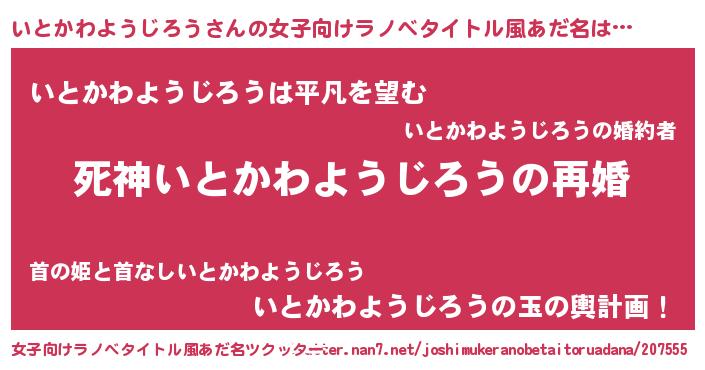 | 男性向けラノベタイトル風あだ名 | 『ノーゲーム・ノーイトカワヨウジロウ』 |