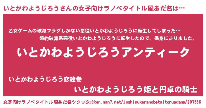 | 意味不明あだ名 | 『自称いとかわようじろう』 |