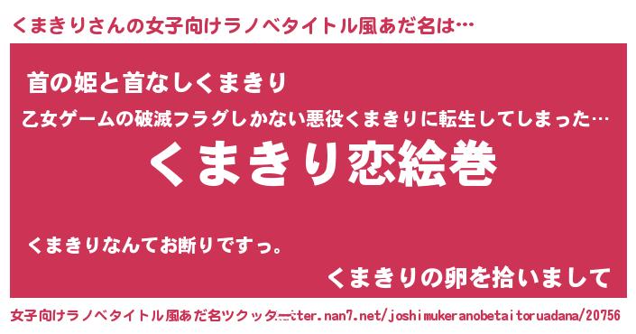 | 男性向けラノベタイトル風あだ名 | 『ノーゲーム・ノークマキリ』 |