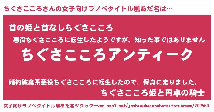 | 意味不明あだ名 | 『自称ちぐさこころ』 |