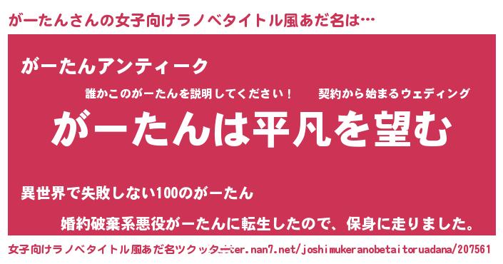 | 胡散臭い通販商品みたいなあだ名 | 『信頼と実績のネックレス…その名も「がーたん」』 |