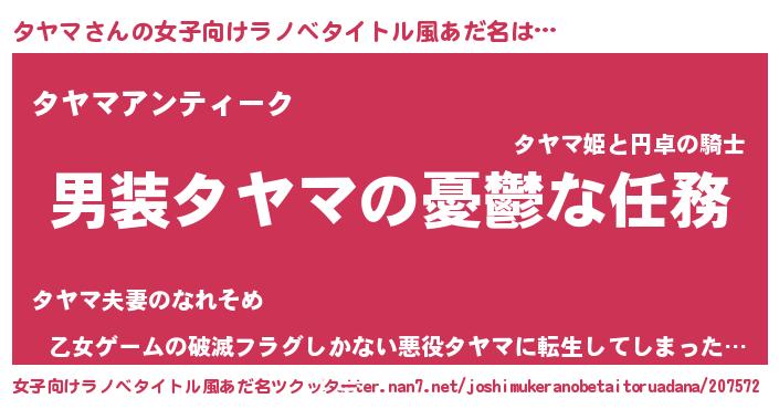 | 男性向けラノベタイトル風あだ名 | 『冴えないタヤマの育てかた』 |