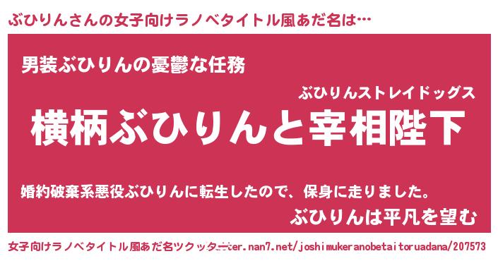 | 男性向けラノベタイトル風あだ名 | 『ぶひりんに滅ぼされるだけの簡単なお仕事です』 |