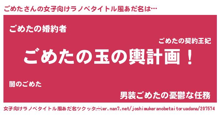 | 胡散臭い通販商品みたいなあだ名 | 『運命の人と巡り会える高級そうな絵画…その名も「ごめた」』 |