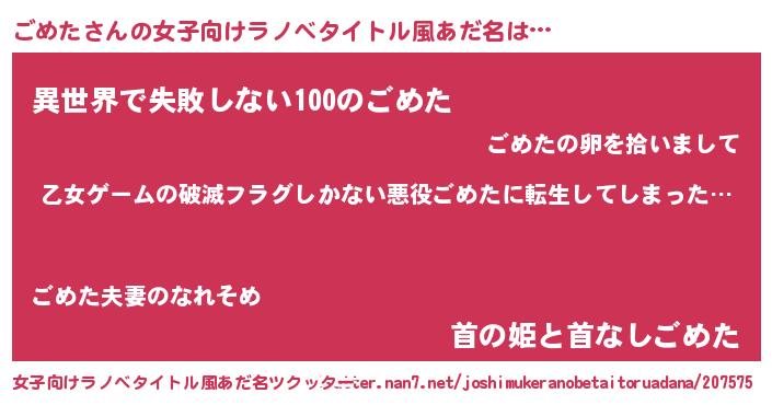 | 意味不明あだ名 | 『住所不定無職ごめた(7歳)』 |