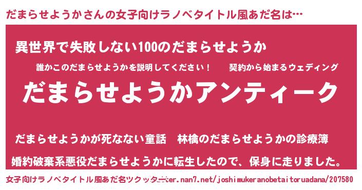 | 男性向けラノベタイトル風あだ名 | 『魔法科高校のだまらせようか』 |