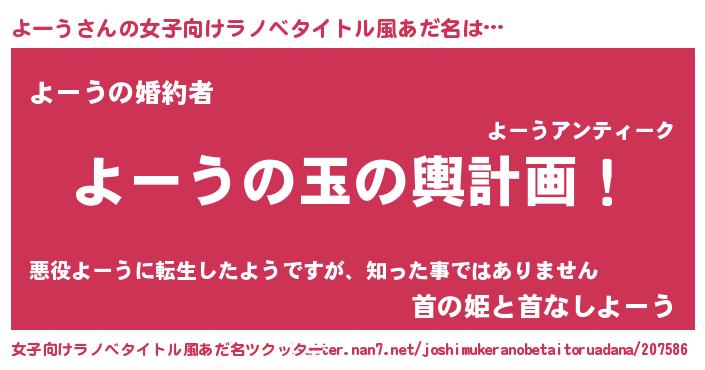 | 意味不明あだ名 | 『もやし科よーう属』『自称よーう』 |