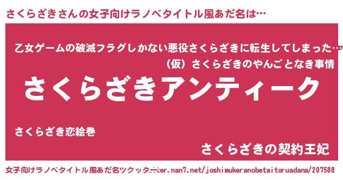 | 男性向けラノベタイトル風あだ名 | 『魔法科高校のさくらざき』 |
