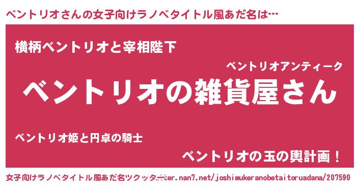 | 男性向けラノベタイトル風あだ名 | 『やはりベントリオの青春ラブコメはまちがっている 』 |
