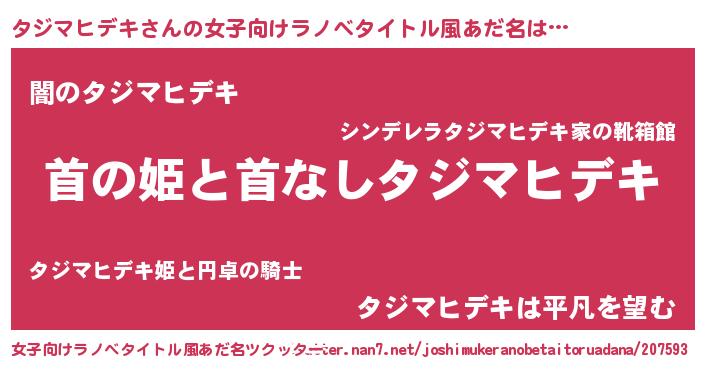 | 男性向けラノベタイトル風あだ名 | 『はたらくタジマヒデキさま!』 |