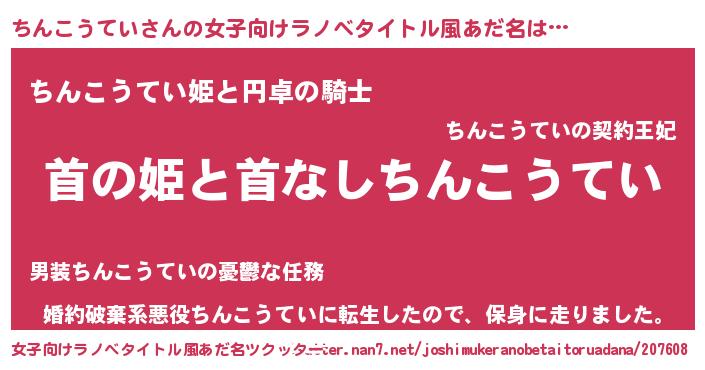 | 男性向けラノベタイトル風あだ名 | 『はたらくちんこうていさま!』 |