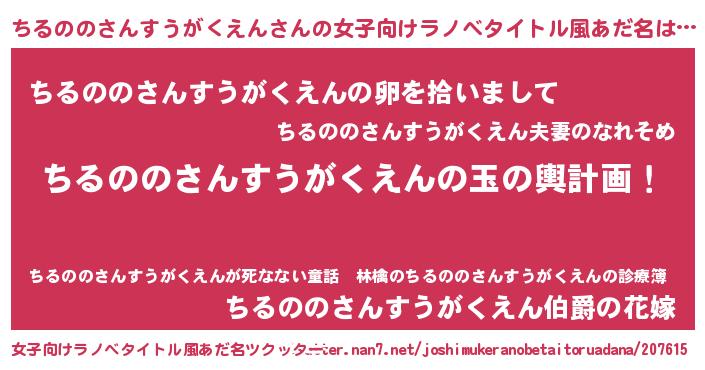 | 男性向けラノベタイトル風あだ名 | 『ちるののさんすうがくえん~年齢イコール彼女いない歴の魔法使い~』 |