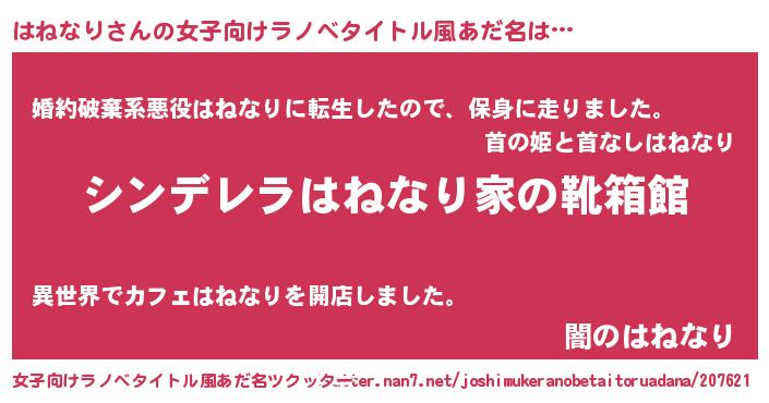 | 男性向けラノベタイトル風あだ名 | 『緋弾のハネナリ』 |
