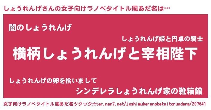 | 意味不明あだ名 | 『自称しょうれんげ』 |