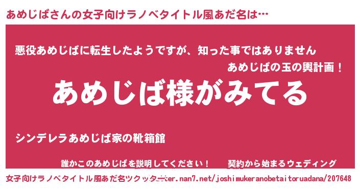 | 男性向けラノベタイトル風あだ名 | 『あめじばの嫁は女の子じゃないと思った?』 |