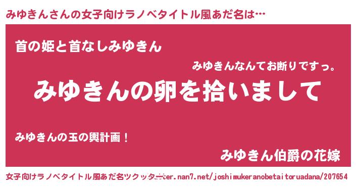 | 男性向けラノベタイトル風あだ名 | 『ダンジョンにみゆきんを求めるのは間違っているだろうか』 |